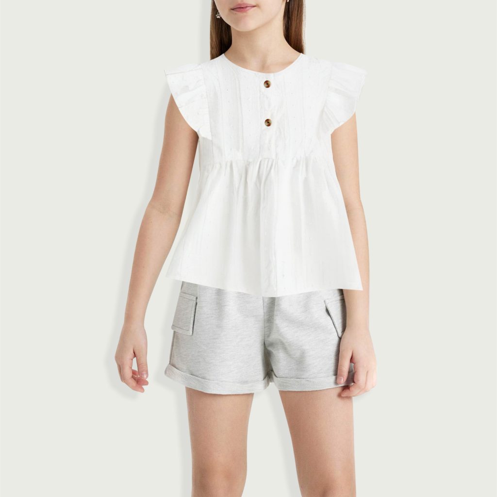 [Product Details] This children’s top is made of all-polyester woven fabric, combined with cotton and linen style design, bringing a refreshing, breathable and environmentally friendly wearing experience. The sleeveless lotus sleeve design is inspired by the natural and light lotus leaves, with a unique shape, enhancing the overall sweetness and liveliness. The round neck cut […]