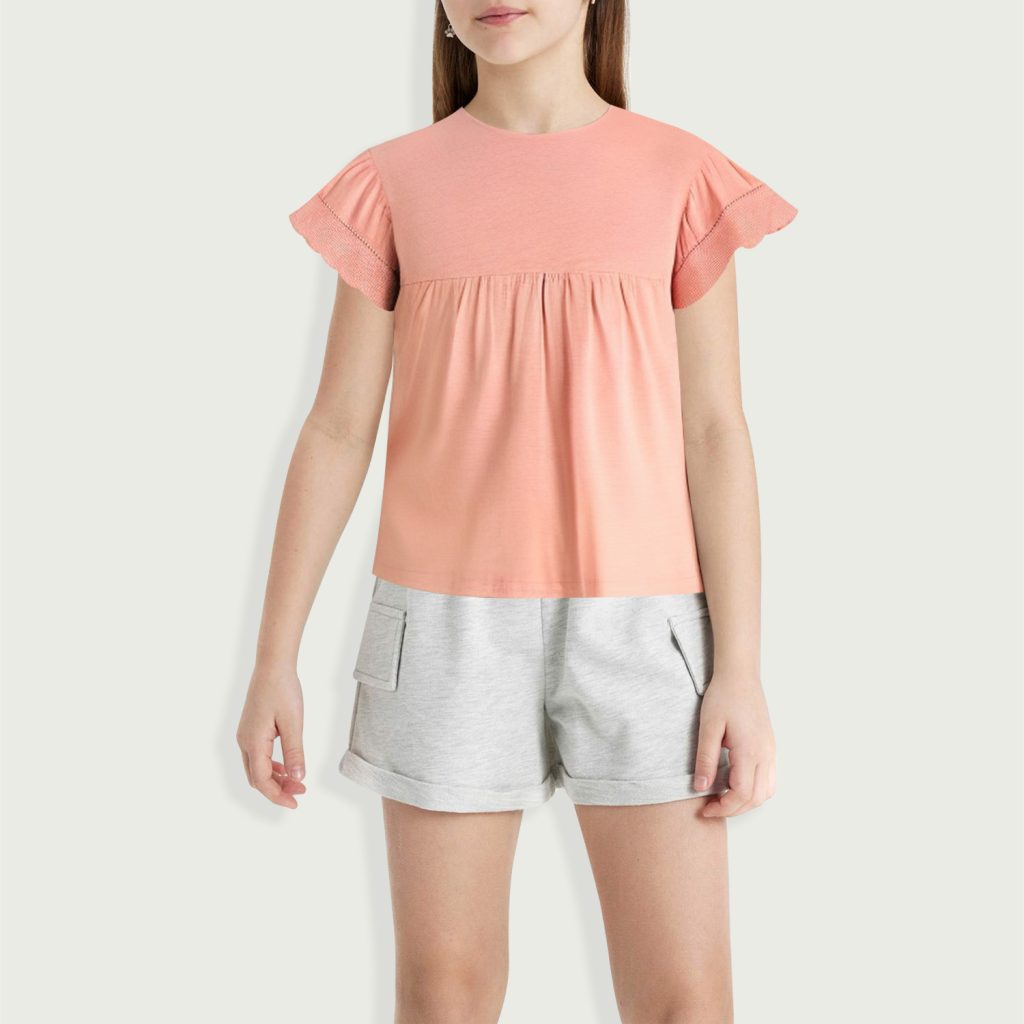 【Product Details】 This short-sleeved babydoll T-shirt for girls is made of high-quality bamboo knitted fabric blended with 60% cotton and 40% polyester. The fabric is soft and delicate, extremely elastic and breathable. It is designed for children’s delicate skin to ensure comfortable wearing. The sleeves are decorated with exquisite eyelet embroidery, which is charming in […]
