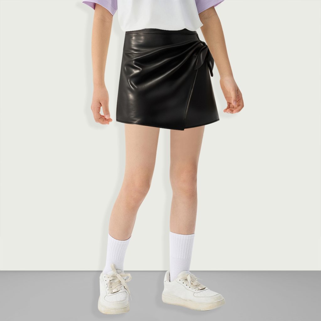 Girls PU Leather Wrap Knotted Pleated Side Culottes