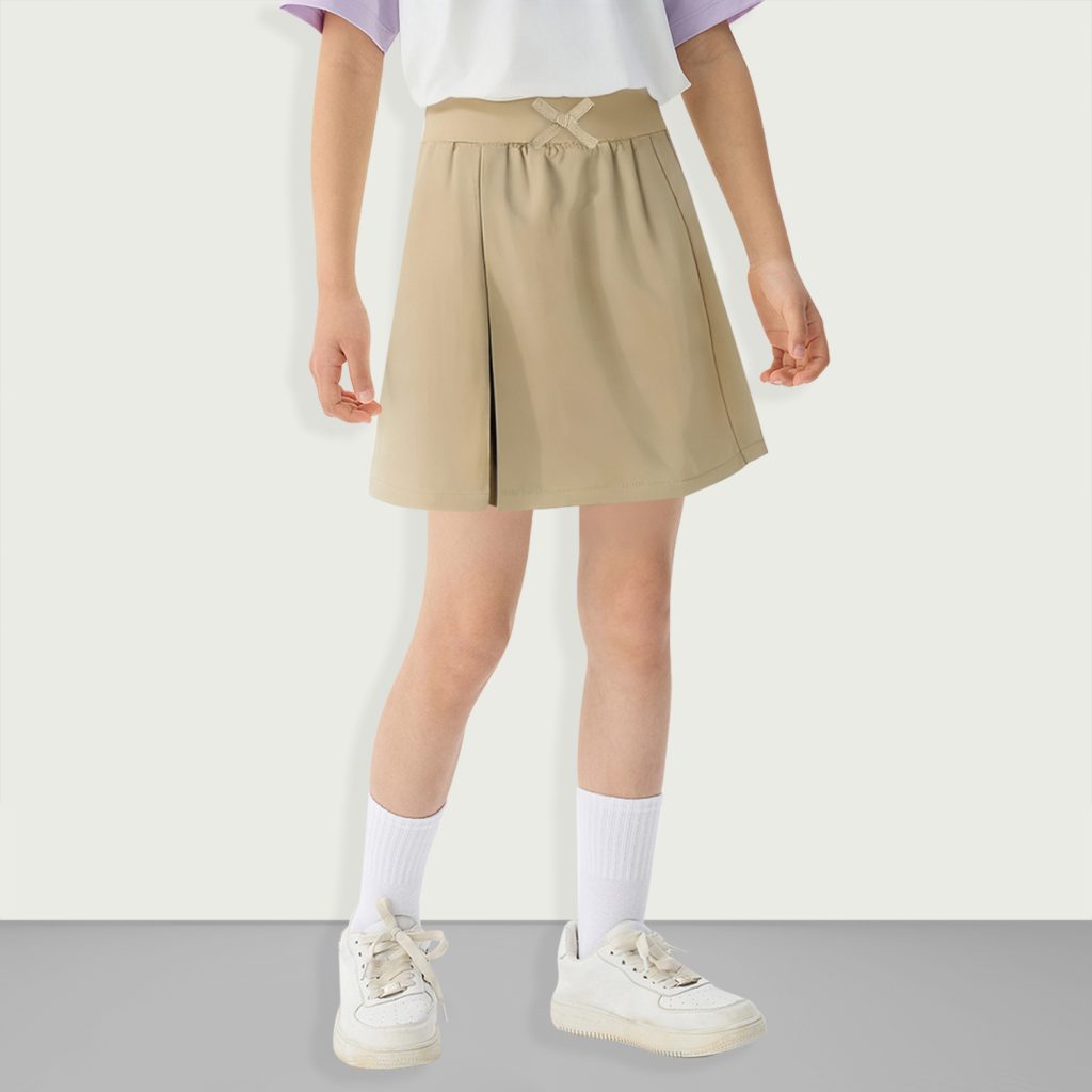 [Product Details] This girls’ culottes is made of 100% polyester. Although it is a non-elastic fabric, it is soft and lightweight, ensuring comfortable wearing. The design adopts a unique wrap style with exquisite knotted details on the side, adding a sense of fashion and layering. The culottes are equipped with pleated design, and the elastic […]