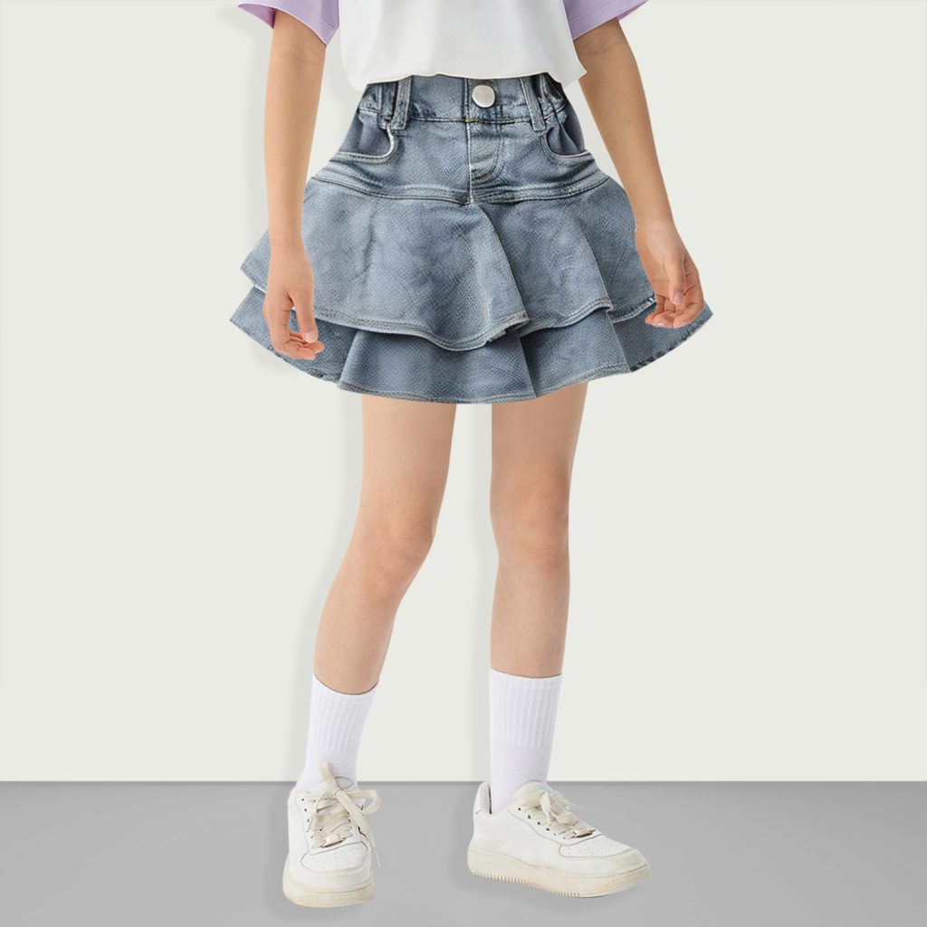 [Product Details] This girls’ denim skirt is made of 100% high-quality denim. The fabric is tough, wear-resistant and elastic. It combines classic and fashionable elements, showing a unique denim charm. The skirt is designed with a mini flared pleat stacking structure. The stacked pleats bring fluffy and dynamic feeling, which is both playful and energetic, […]