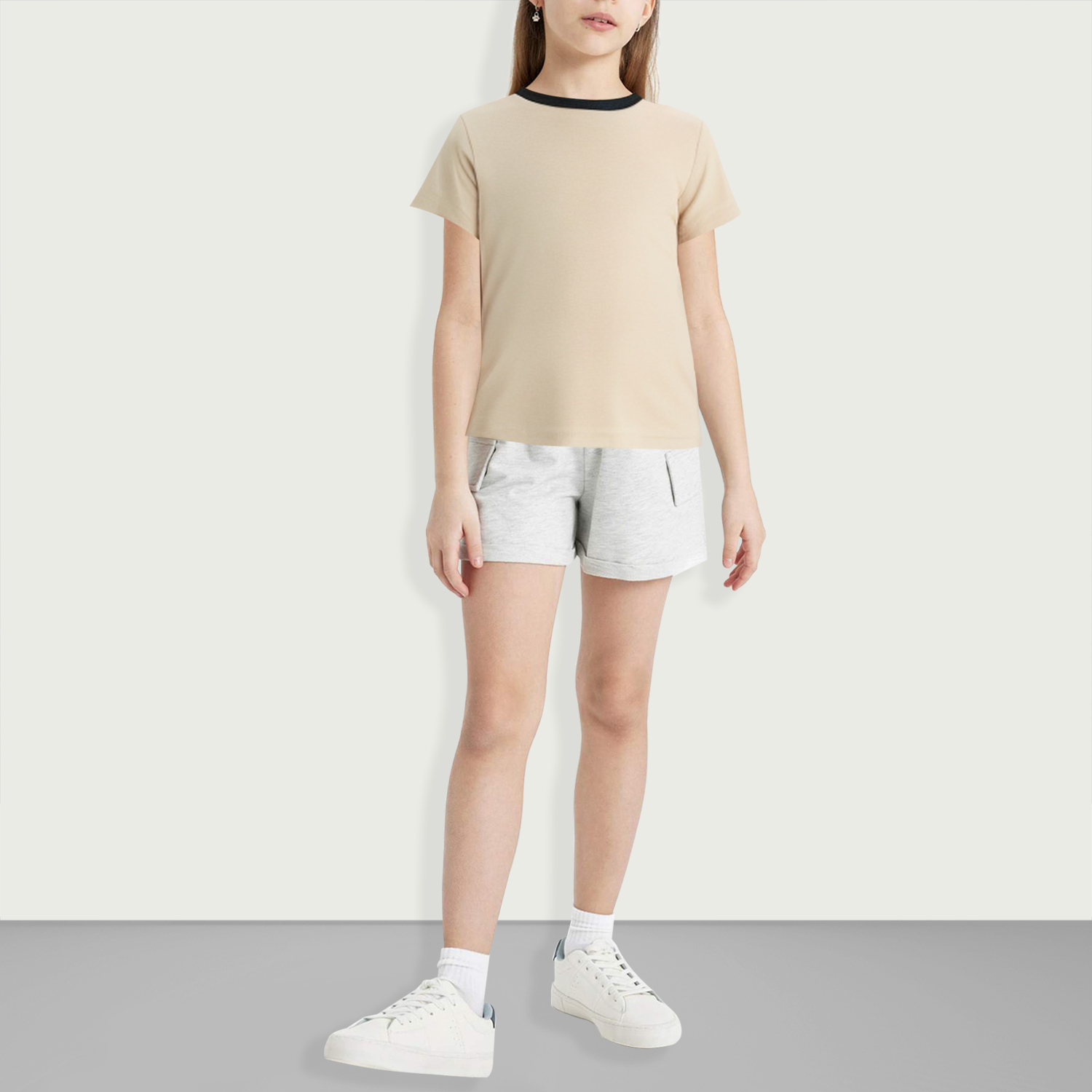 This children’s short-sleeved T-shirt is designed for summer. It is made of high-quality cotton and polyester blended knitted fabric. It combines softness, comfort, durability and washability. It has both breathability and quick-drying functions to meet the various needs of children’s daily wear. The cartoon prints are vivid and cute, and are loved by children. The fresh and bright colors add a touch of summer vitality. The 180g weight fabric is neither heavy nor thin, just right for the comfort of cool summer wear.