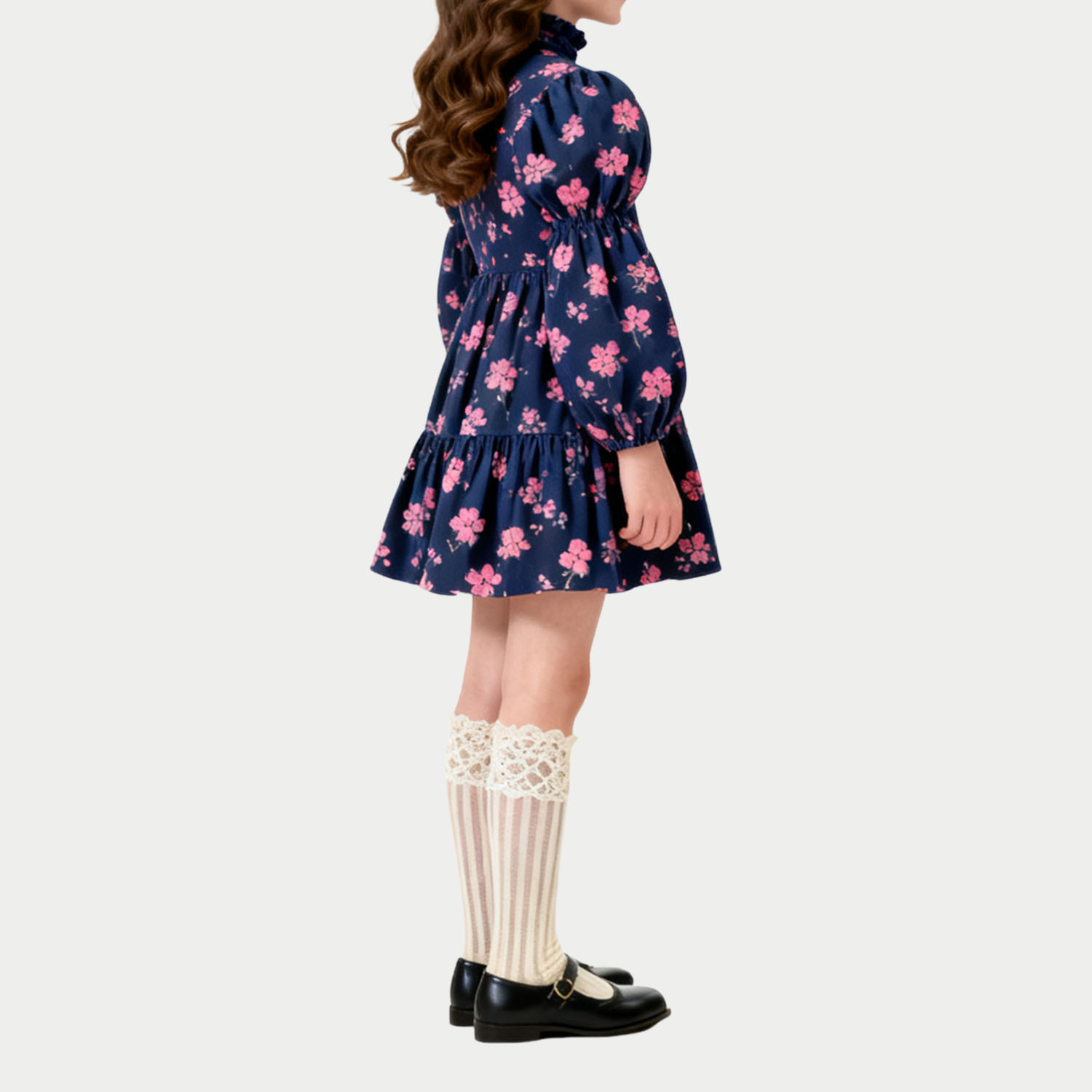 Be the first to review “Retro Floral High-Neck Puff Sleeve Girls’ Long-Sleeved Dress”